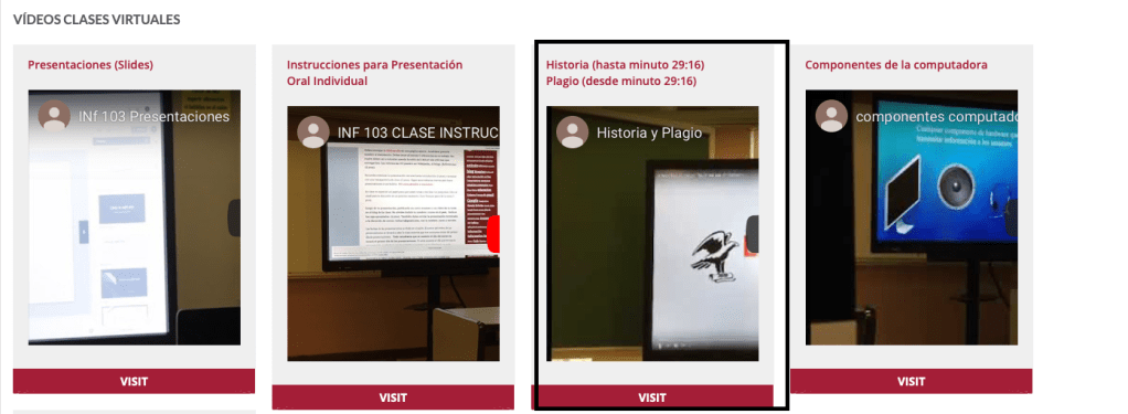 Para más información sobre el plagio, la profesora subió un video al portal en el lugar de Resources; para esto, debes acceder al portal de mi.sagrado.edu y entrar tus credenciales, accedes al curso y entras a Historia y Plagio, donde podrás ver el video, que señala que debes ver los primeros 29 minutos.