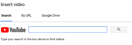 - Salen 3 opciones para colocarlo: búsqueda por YouTube, URL o subirlo desde el Google Drive