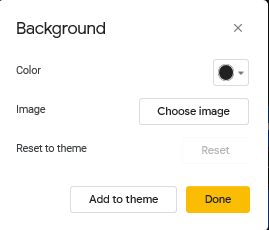 Change background sirve para cambiar el color del fondo de la presentación o poner una imagen.