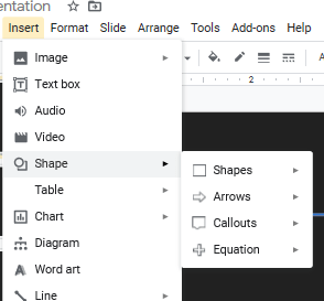 En Insert-Shape se seleccionan diferentes figuras geométricas para: