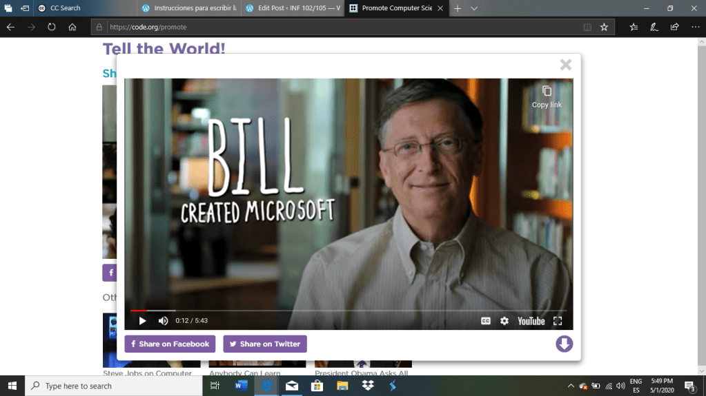 En la clase de hoy platicamos como el Sr. Bill Gates estaría disponible en la mañana del 22 de abril para una breve demostración y charla hacía como poder utilizar el recurso de code de manera correcta y precisa.